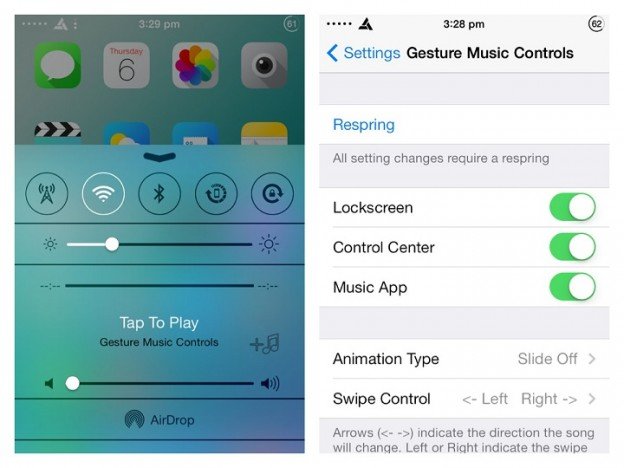 Music is best way to get relaxed, today’s smartphones come with Great music features that we don’t even need traditional music players. Apple iPhone is no different, it comes with great music functionality, iTunes Radio option and more. Apple with the introduction of iOS 7 added an option to control music directly from control center. But what if you want to control music with gestures, there is no option for this but a new jailbreak tweak allows you to do this.