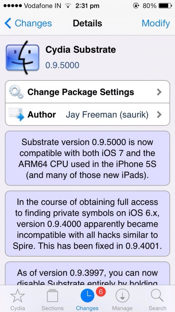 Good news jailbreakers, mobile substrate by Saurik is now Cydia Substrate and now it’s updated for iOS 7. It also supports 64- bit CPU used in iPhone 5S , iPad air & ipad mini retina. The update is now available on Cydia.